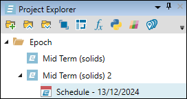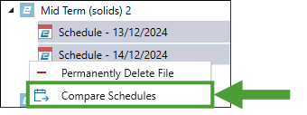 Tip: You can open and compare two schedules originating from a non-dynamic solids setup in your workspace. To do so, click Ctrl and select the required schedules in the project explorer. Next, right-click on them and select