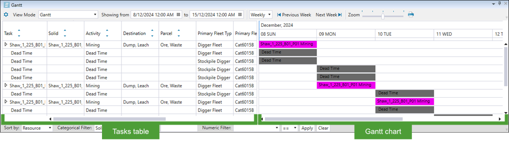Note: You can access the Gantt tab when viewing either a saved schedule or a generated schedule that you have not saved yet.