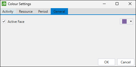 General tab. Select the required colour from the colour picker for the Active Face. When you step through the schedule, Epoch will colour the current solid being mined according to the selected colour.