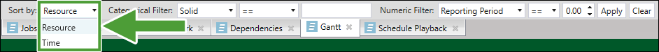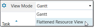 Change the view from Gantt (default setting) to the Flattened Resource View using the View Mode drop-down.