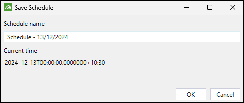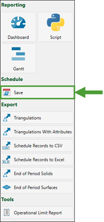 Save in the Schedule section on the right-hand side of the screen.Note: Saving schedules is not supported for dynamic solids setups.