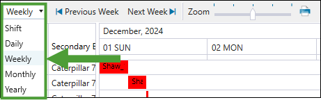 Specify the time interval to limit the amount of the displayed data by selecting Shift, Daily, Weekly, Monthly, or Yearly from the drop-down.