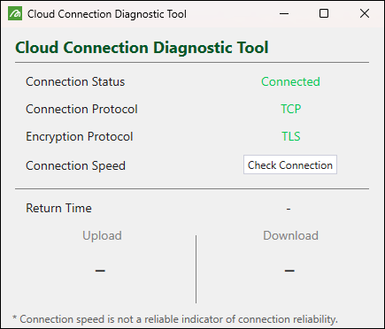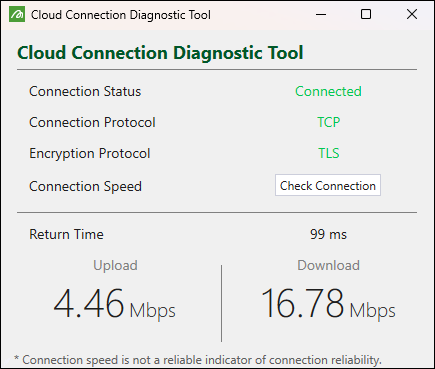 (Open diagnostic tool) button on the top right corner of the Jobs window. This will open the Cloud Connection Diagnostic Tool panel with the detailed information on your current connection.