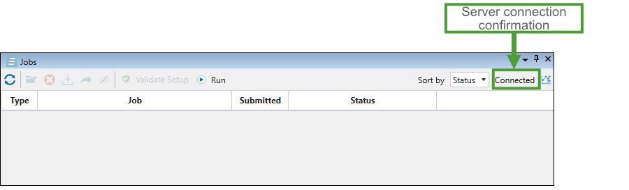 To avoid consuming significant amounts of resources on users’ machines, Evolution uses cloud processing to generate mining schedules. Each time you load a project while having an active internet connection, the Evolution desktop client will connect to the Evolution cloud service. Once a connection to the server is established, it will be indicated on the top right corner of the Jobs window.