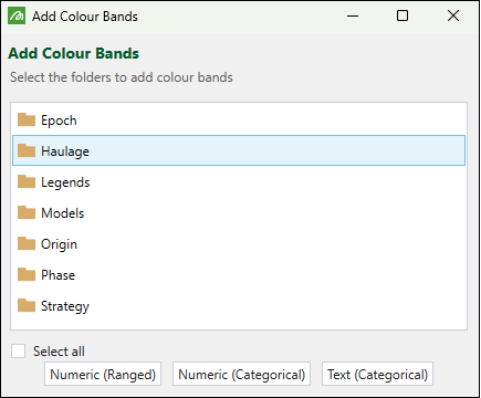 Select the folders you want to add colour bands to. You can either select individual folders or select the Select all checkbox.