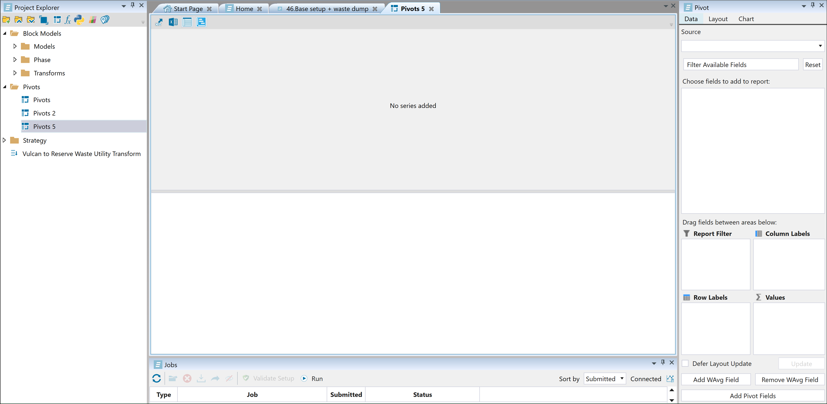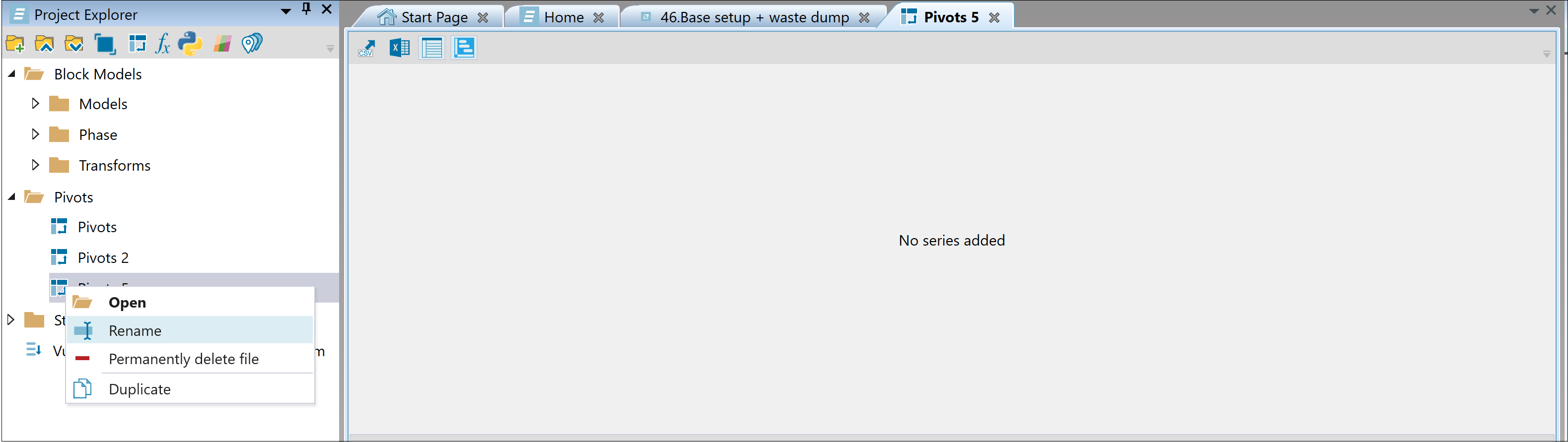 (Add Pivot Report) in the project explorer toolbar. Evolution will add a new pivot report to the Pivots folder and open the report in the workspace.