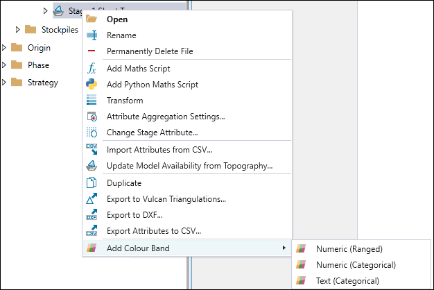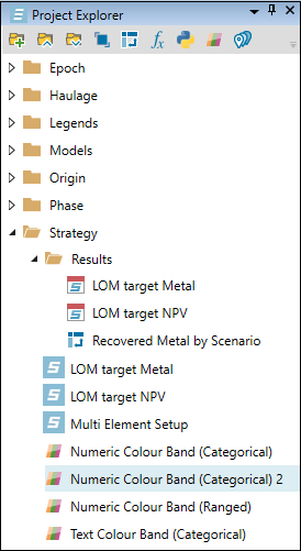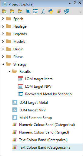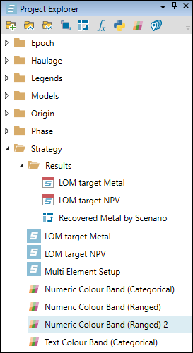 You can assign colour bands to particular folders in the project explorer and specify a model attribute to provide the colour bands with values. There are three types of colour bands: