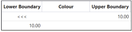 Note: The <<< symbol in the Lower Boundary cell of the first row signifies that this band accounts for any values below the corresponding Upper Boundary value. The >>> symbol in the Upper Boundary cell of the last row signifies that this band accounts for any values above the corresponding Lower Boundary value.