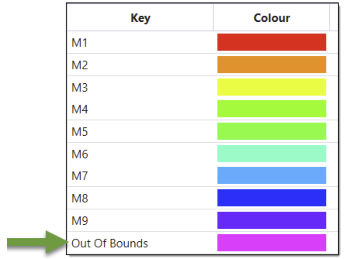 (Order alphabetically) to reorder the colour bands. This will move the Out of Bounds row to the bottom of the colour bands table.