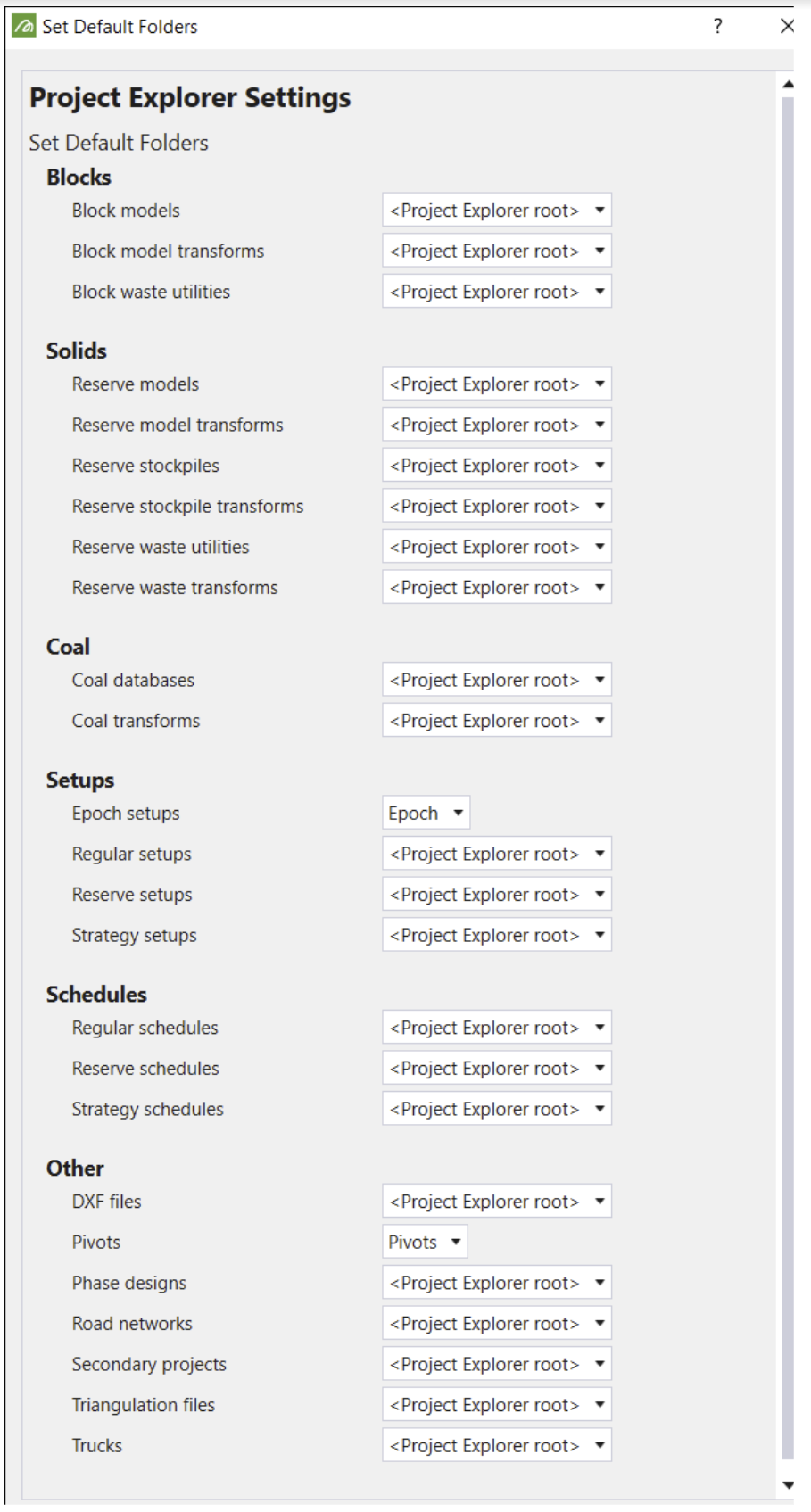 (Sync Active Document) to locate in the project explorer a model, setup, or a haulage network that you currently have open in your workspace. Evolution will navigate to the corresponding location in the project explorer even if the given item is nested under the currently collapsed folder.