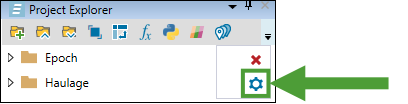 Note: Depending on the width of the project explorer, some toolbar items may be hidden in the drop-down. Click
