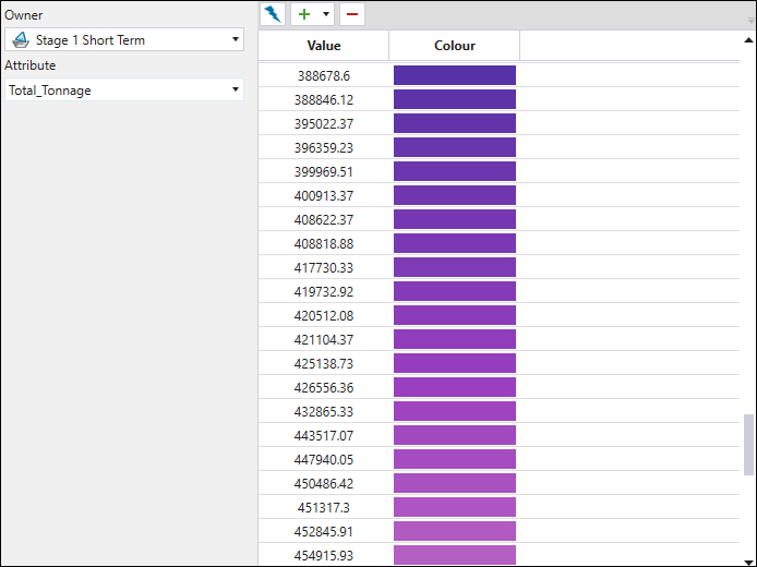 A colour band is a collection of colours you can use to visualise the values of a selected attribute in a model. You can apply it to your model by dragging it into the viewer. Once applied, it is maintained in your project, which gives you the possibility of reusing the same colour band every time.