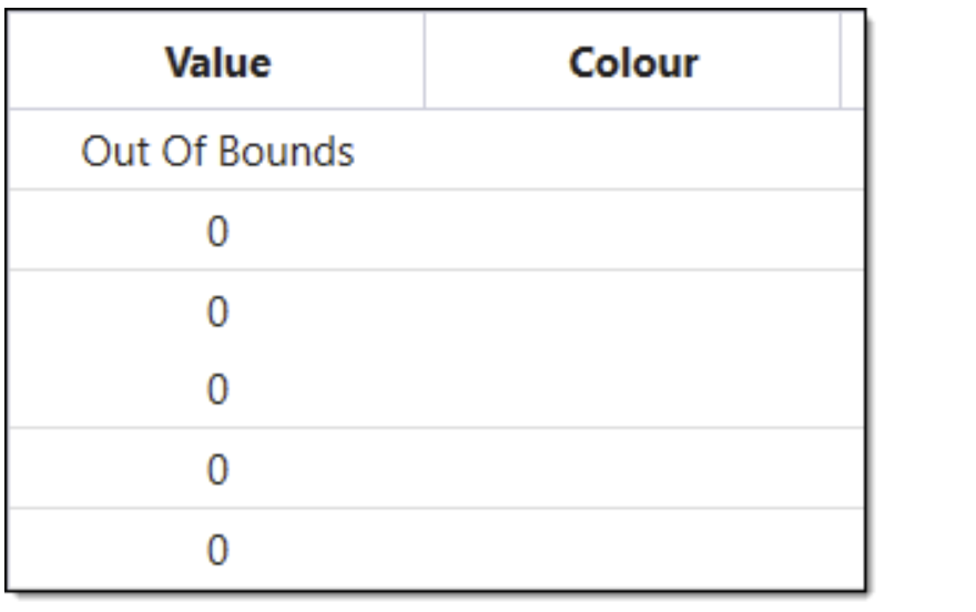 Tip: As you enter an Upper Boundary value, Evolution will copy this value into the Lower Boundary field in the row below. You can then continue adding values until you have the desired colour band boundaries.