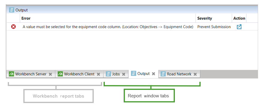 The tabs listed in the report window depend on the setup type that you currently have open.