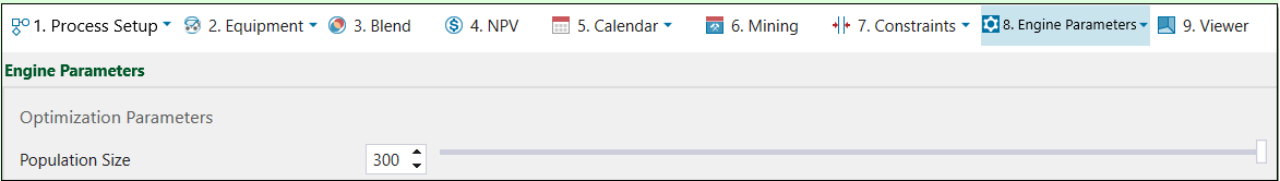 As a result, in the Engine Parameters tab, the maximum value you can set the Population Size parameter to is 300.