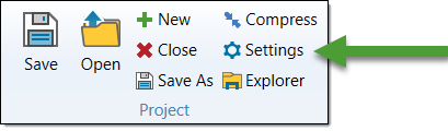 Settings in the Project group on the Evolution ribbon.