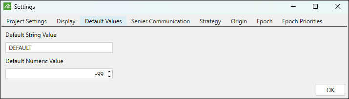 Use the Default Values tab to define the default string and numeric values.