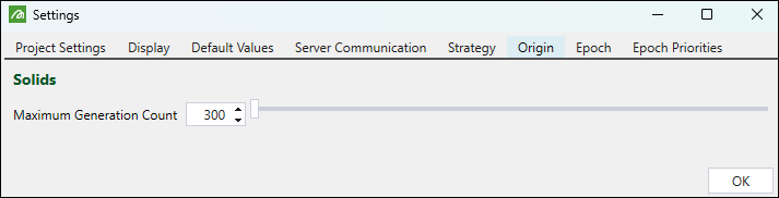 Use the Origin tab to set the maximum generation count for solid setups.