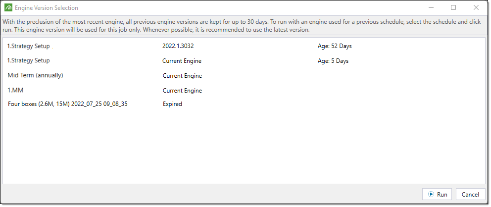 After selecting this checkbox and clicking Run in a setup, you can process the job with an older engine by following these steps: