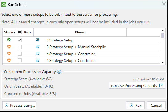 Note: You can increase the processing capacity to run more scenarios concurrently by obtaining Evolution add-on entitlements relevant to the Evolution planning module that you are currently using. Click the Increase Processing Capacity