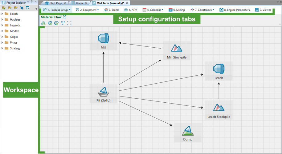 Before configuring your setup, you will need to import or create models that represent your pits, waste dumps, stockpiles and road networks. You will use the information stored in these models to configure your setups.