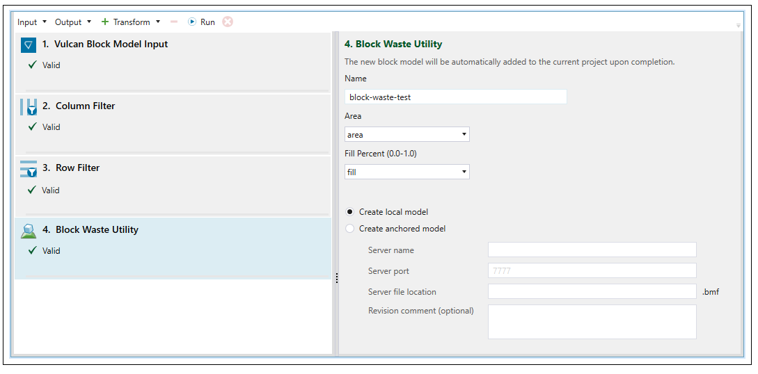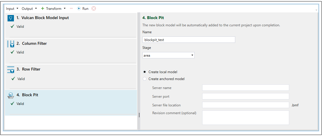 A new file named Block Model Transform will be created in the Transforms folder in your project explorer.