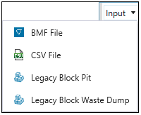 Origin Blocks models can be imported from a Vulcan block model file (.bmf), an Evolution block model file (.evbm), a comma-separated values (CSV) file (.csv), or an Evolution waste dump file (.evwd). If a block pit is imported from a BMF or an EVBM file, the object appears in the project explorer and can be immediately added to your Origin Blocks setup. Other import types require additional data preparation using the