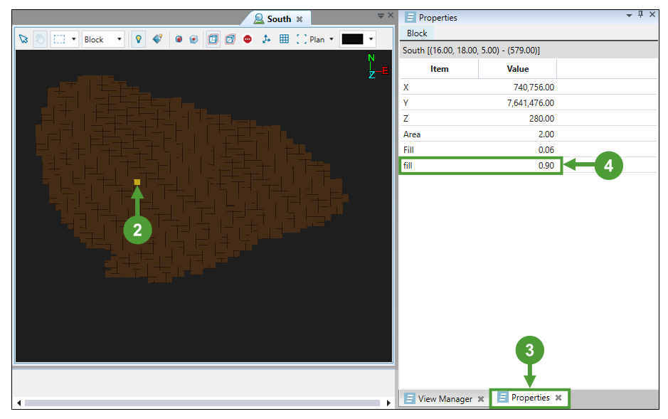 - Origin: Enter in the block model origin if it is not a default 0, 0, 0 value. These coordinates are used in the block model manipulations, particularly reblocking.
