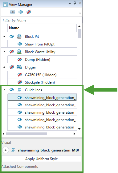 Guidelines category in the View Manager and list the layers under it.
