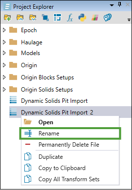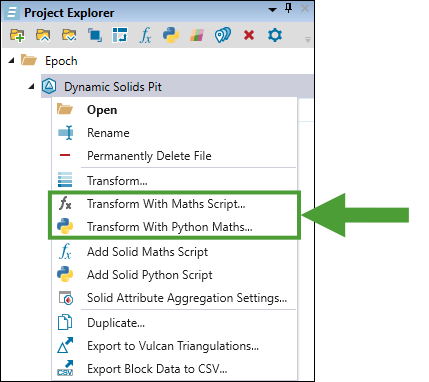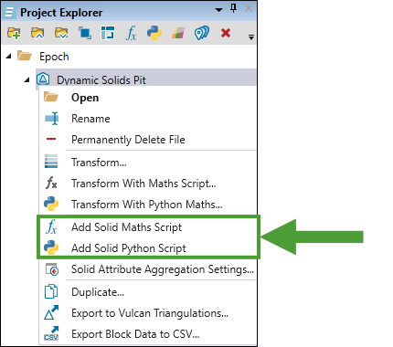 Right-click the required dynamic solids pit in the project explorer.