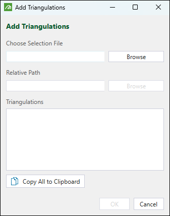 Expand for more information on adding triangulations from .selfiles.The Add Triangulations panel will appear when you click the
