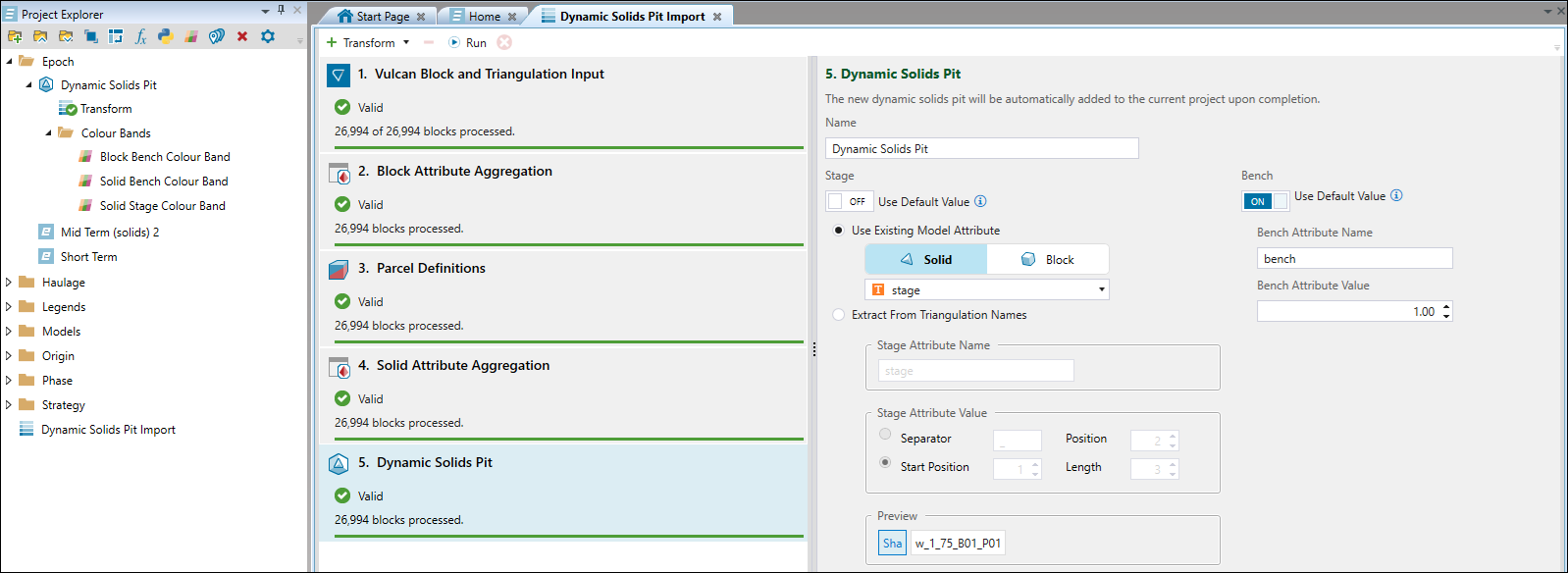 Evolution will add the Dynamic Solids Pit Import file to the project explorer and open it in a new tab in your workspace.