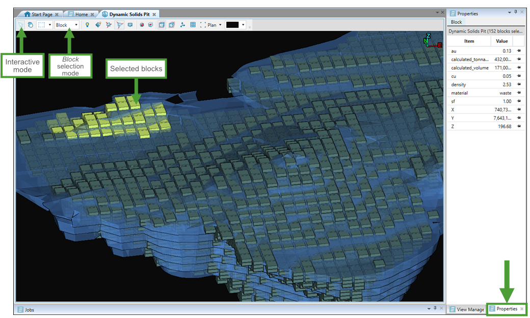 Tip: Check the properties of the required blocks by changing the selection type to Block and selecting them in the viewer.