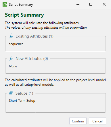 Click Confirm to apply the listed attributes in your model.
