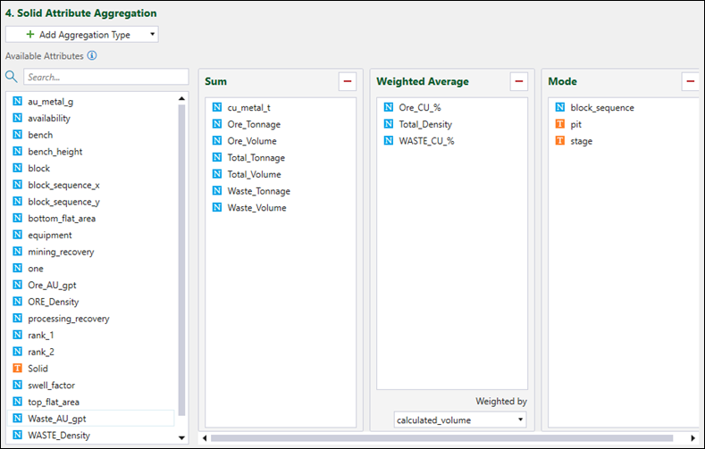 Solid Attribute Aggregation panel.You can configure this panel the same way that you set the