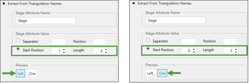 1as Start Position and4as Length. To set One as the stage attribute, enter6as Start Position and3as Length.
