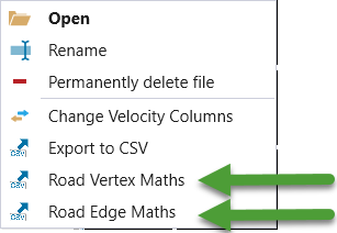 Right-click on a Road Network in the Project Manager, and select Add Road Vertex Maths or Add Road Edge Maths. This will create an empty script.