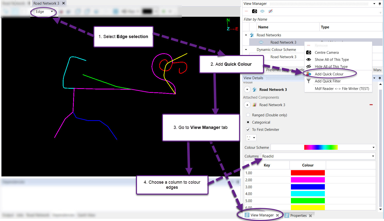 - Right-click on the road network in the View Manager and select the Add Quick Colour option.
