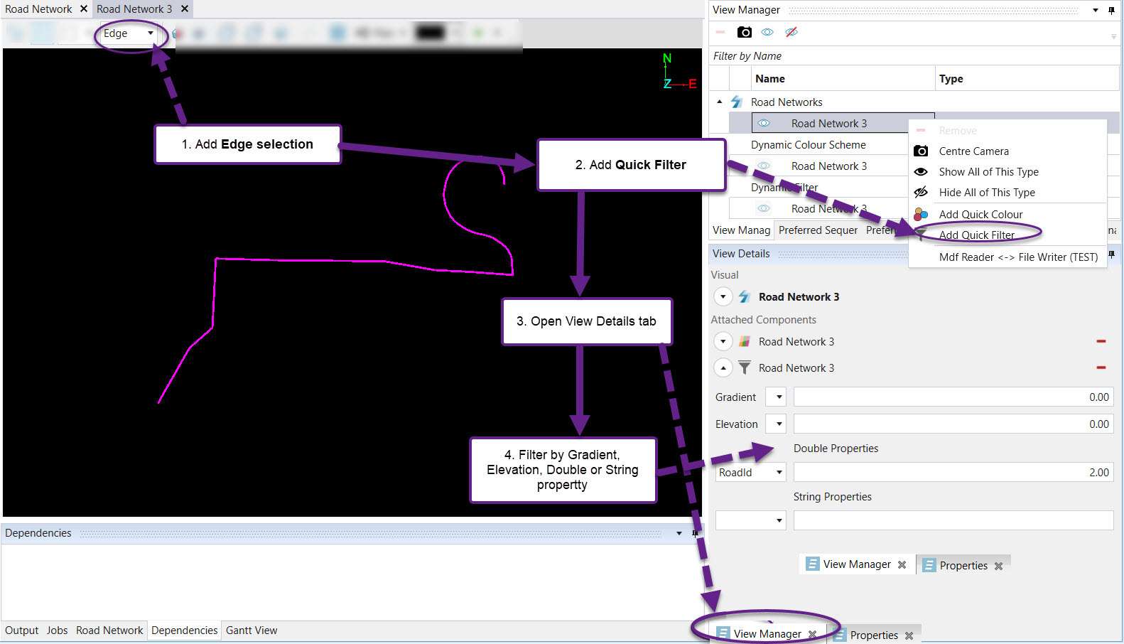 - Right-click on the road network in the View Manager and select the Add Quick Filter option.