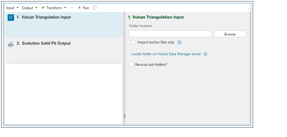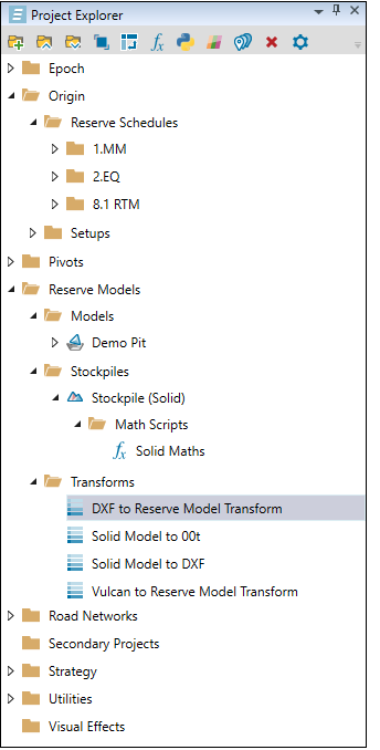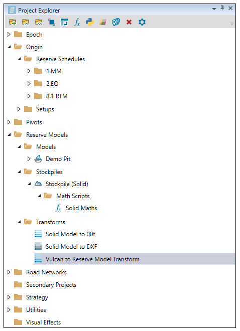 If you have selected Vulcan Reserve Model as an input type, a file with the name you have set will be created under the Transforms folder in your project explorer.