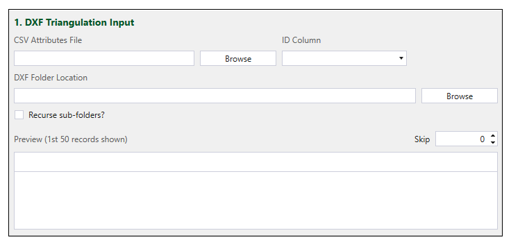DXF Triangulations as an output, specify the name of the new model to be created, and the location under which the folder with the model should be saved.