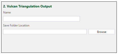 Vulcan Triangulations as an output, specify the name of the new model to be created, and the location under which the folder with the model should be saved.