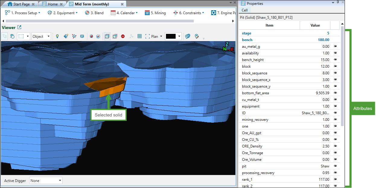 The set of attributes related to each solid in a model is stored in the Properties tab.
