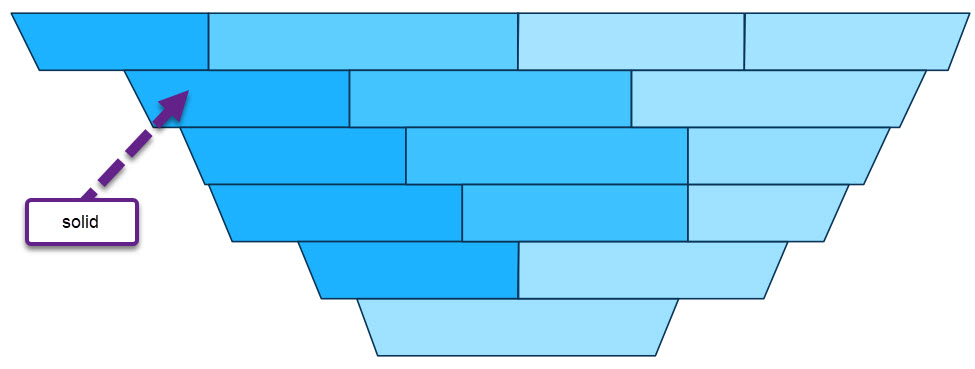 A solid model consists of a table of information and a 3D model that contains irregularly shaped units of material. Every unit (called a solid) shares a set of attributes.
