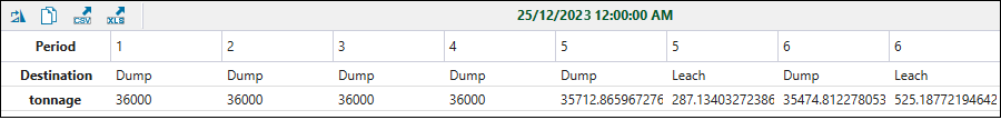 Strategy schedule, based on the Mine Sequence Report records.