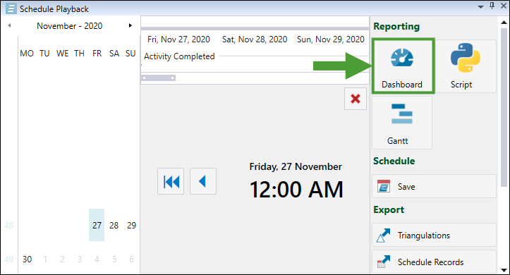 Dashboard in the Schedule Playback window.Note: Click