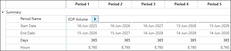 Note: If a schedule takes longer than the number of periods in the calendar, the values in the final calendar period will be used for all subsequent schedule periods.