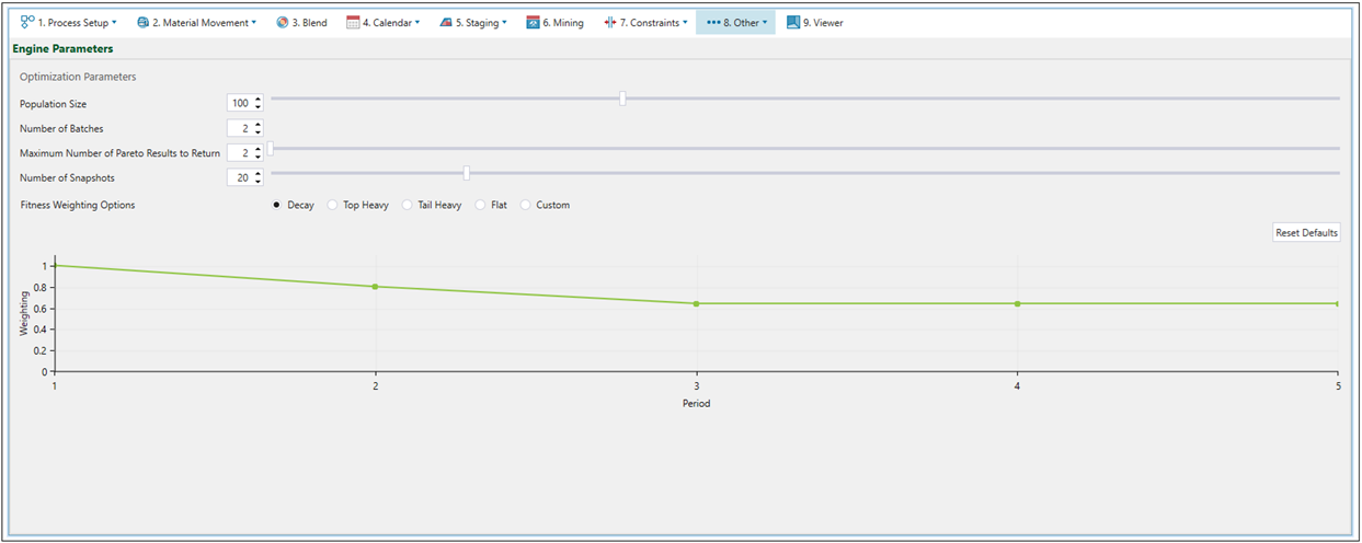 Note: An error will be returned if 20 or more periods from your schedule cannot meet the specified targets. If this occurs, you will need to either adjust your targets or relax your constraints until a solution can be found. Evolution understands that the final period may not meet targets due to all minable material being extracted, so no error will be returned in this case.