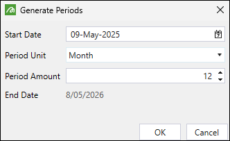 Note: If there are any previously added periods in the calendar, the newly generated periods will be added after the existing periods. |