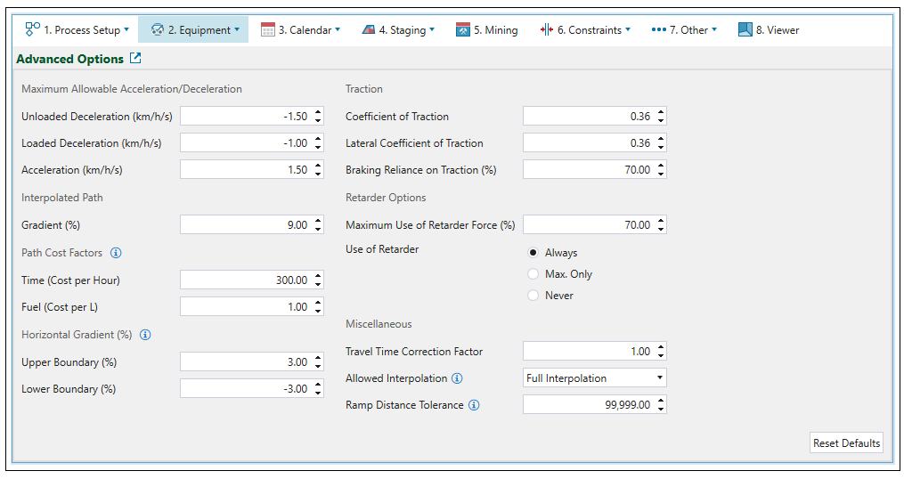 Advanced Options tab allows you to define the following parameters for haulage-based schedules.
